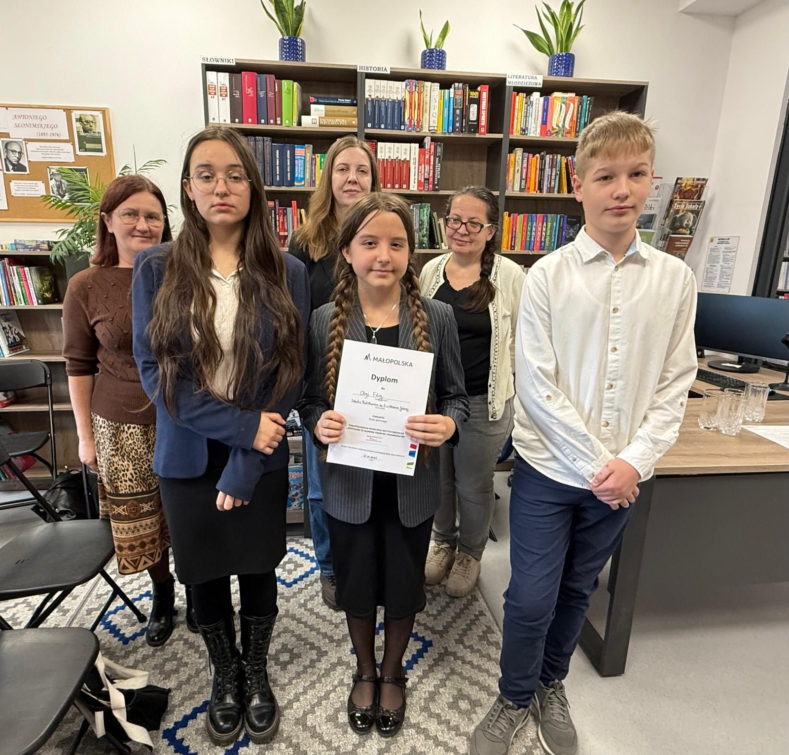 22 października 2025 r. w Bibliotece Pedagogicznej w Mszanie Dolnej odbył się gminny etap Małopolskiego Konkursu Recytatorskiego „Spotkanie ze słowem pięknym i prawdziwym”. Wśród trzech finalistek, które zakwalifikowały się do etapu powiatowego znalazła się uczennica naszej szkoły – Olga Flig (kl. VI). W etapie gminnym naszą szkołę reprezentowali również Magdalena Głuch (kl. VIII) oraz Szymon Smaciarz (kl. VII).